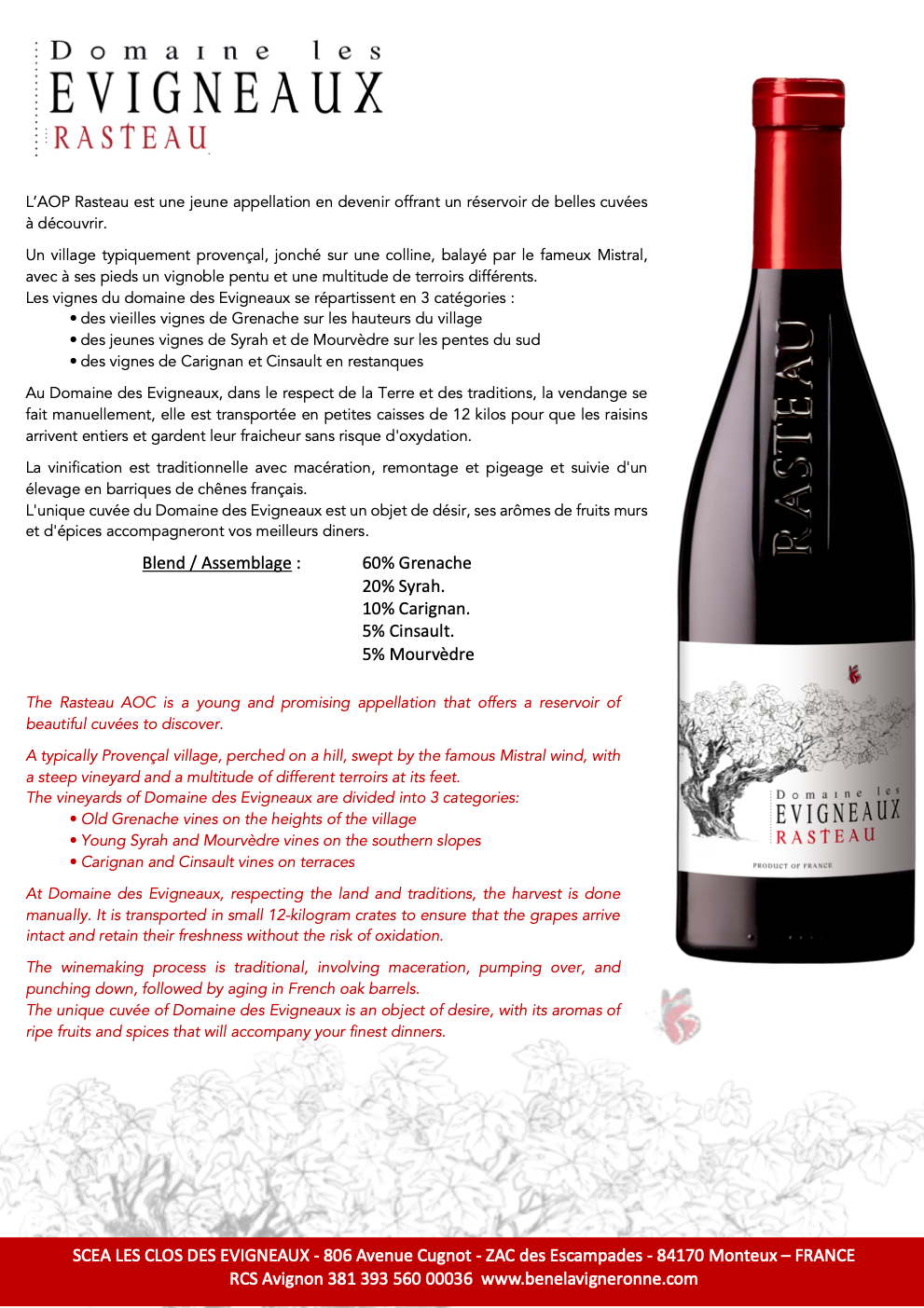 6 bouteilles de DOMAINE DES EVIGNEAUX Rouge Millésime 2019 OR A PARIS